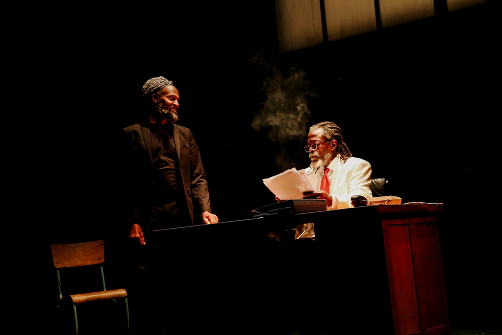 Production Compagnie BillKiss* I O Mcezo* • Coproduction BillKiss*, Les Francophonies I Des écritures à la scène – Tropiques Atrium, Scène nationale, Théâtre des Quartiers d’Ivry – CDN du Val-de-Marne • Partenariat Auditorium Sophie Dessus – Mairie d’Uzerche • Avec le soutien de La Chartreuse Villeneuve Lez Avignon – Centre national des écritures du spectacle vivant, du ministère de la Culture – DRAC Île-de-France, du Fonds d’aide aux échanges culturels et artistiques pour l’Outremer (FEAC), l’Institut français dans le cadre du programme « Des Mots à la Scène ». Le texte est lauréat de l’Aide à la création de textes dramatiques – ARTCENA et lauréat ex aequo du prix international 2023 – 2024 du comité de lecture Quartier des Autrices et des Auteurs (QD2A), accueilli au Théâtre des Quartiers d’Ivry – CDN du Val-de-Marne. Éditions Passage(s) et Traverse(s), avec le soutien du QD2A et du TQI. ©GB I Fonds W.I.