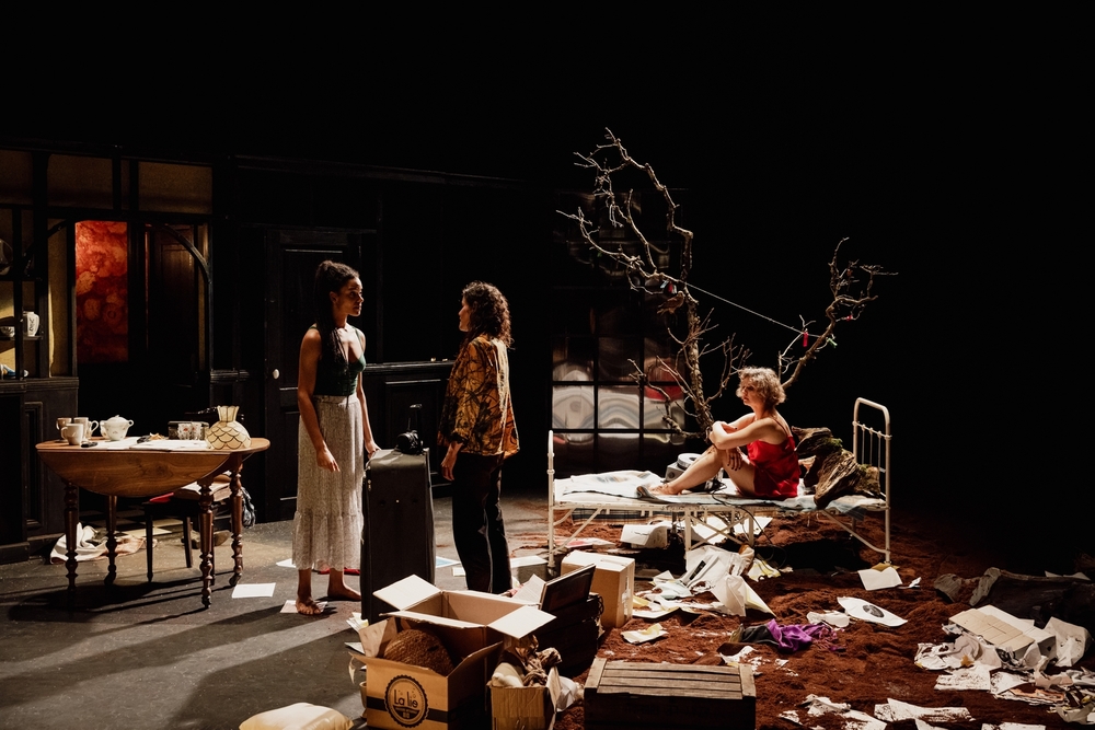 Texte Penda Diouf • Mise en scène Lucie Berelowitsch • Avec Sonia Bonny, Clara Lama Schmit et Natalka Halanevych – membre des Dakh Daughters • Assistanat à la mise en scène Baptiste Mayoraz • Scénographie François Fauvel, Valentine Lê • Création lumière Kelig Le Bars • Musique Sylvain Jacques • Création costumes Élizabeth Saint-Jalmes, Ève Le Corre-Le Trévédic • Création décors les Ateliers du Préau.